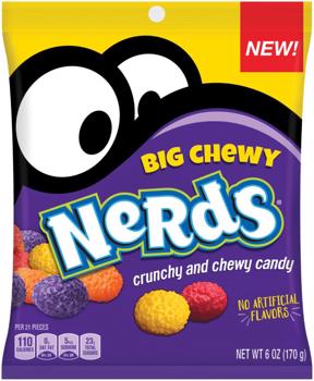 The Nerds Big Chewy Peg Bag is a new and more extensive variation of a traditional Nerds candy. The bag of Nerds Big Chewy Peg Bag comes with more significant, crunchy, and chew candies that will boost your or your little one mood.Β These candies come in four different flavors, including orange, strawberry, grapes, and lemons.