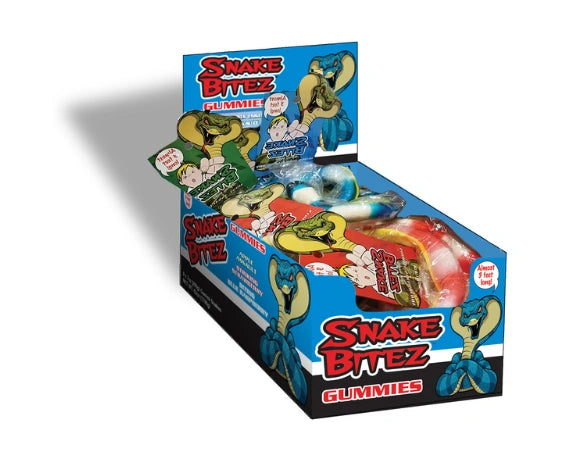 Taste of Nature Snake Bitez are a delicious and fun gummy candy that are almost 3 feet long! They are available in three flavors: Apple Assault, Striking Strawberry, and Biting Blue Raspberry. Each pack contains 9 units of 7oz snakes.